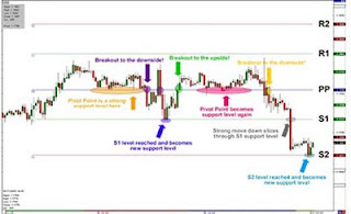 - Bila momentum kuat maka harga akan menembus pivot menuju support atau resistance tetapi bila momentum lemah maka harga akan berbalik arah.